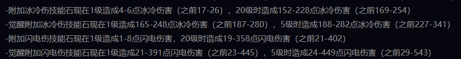 双手武器t1级别的附加冰冷伤害现在提供149-204至300-348的点伤(之前是140-187至278-322)单手为81-111至163-189 点伤(之前77-101至152-174)