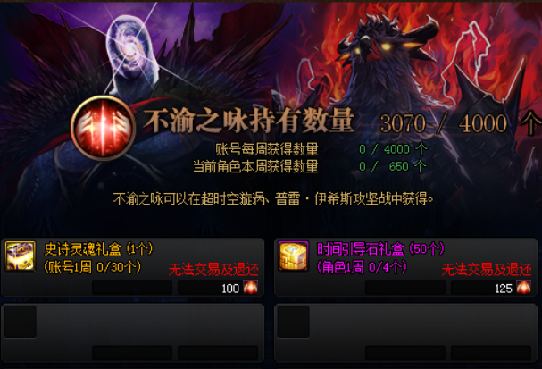 跟以往版本一样,我们可以用史诗灵魂兑换100级的深渊票。不过要注意了,兑换的时候别兑换成“时间结晶礼盒”,这个里面只有4个材料。要是我们想要养大号的话,得兑换“时间引导石礼盒”,里面有20个时间引导石。因此,我们就可以通过小号刷深渊这种方式来为大号提供深渊票。