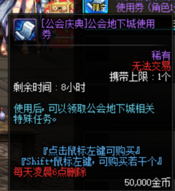 任务难度不高,均以通关指定的公会地下城组成,使用券每天可购买三次,意味着至少可以获得30个公会硬币作为保底。对于急需要硬币的小伙伴来说非常有价值。