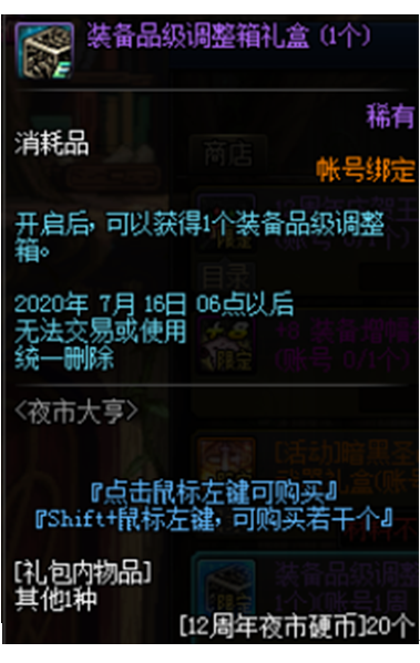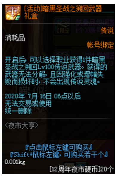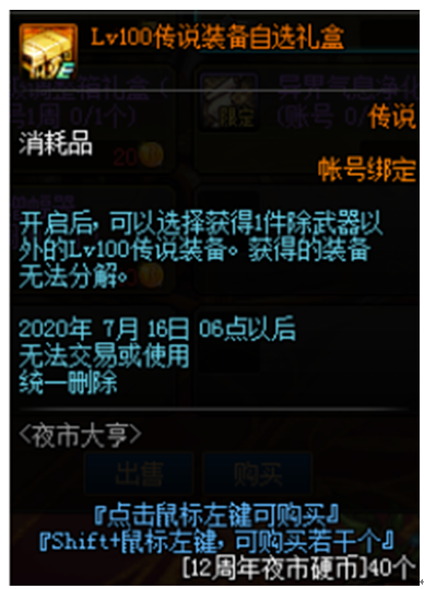 暗黑圣战之溯回武器礼盒(20个硬币)和100级传说装备自选礼盒(账号3个,40个硬币)对于小号装备成型能够起非常大的作用。100级传说装备的强度媲美超界、普雷装备,配合活动赠送的各种附魔宝珠,可以很轻松的应付绝大多数100级副本。