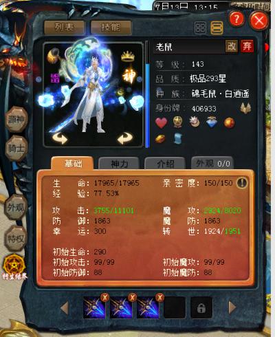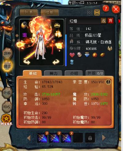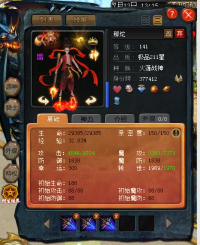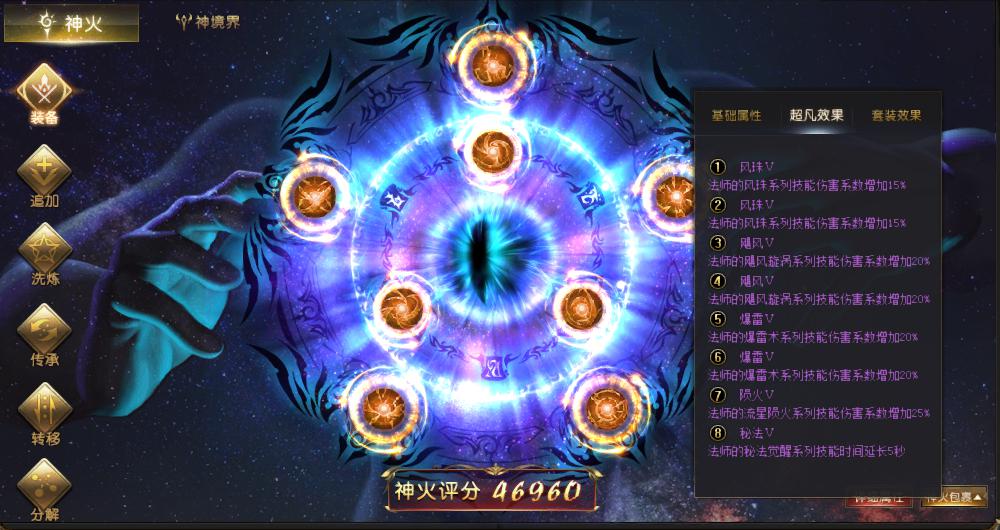 接着讲一下雷火风触发的问题,因为雷风跟火风需同时触发才有雷火风的效果,而两个技能持续时间不一样,可能大家会有疑问,统一解答下。 我们举例在10个火球使用后那么有10秒的火风,在剩余7s时触发了雷风,那么前后就是3秒火风,5秒雷火风,最后2秒转换回火风。 最后,上一波测试伤害的配置图 神火配置:   幻兽配置:    装备情况及神佑等级60,75属性,无诸葛  好了,本期法师的分析就到这里了,以上仅代表个人观点。 最终效果以7月19日更新为准,祝各位魔友们游戏愉快。