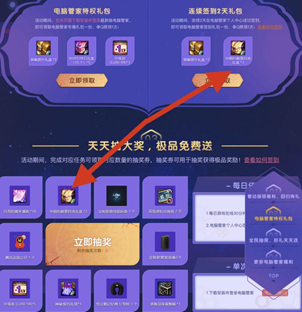 电脑管家签到2天礼包和抽奖,登陆游戏和在管家签到每天都可以抽两次奖,每天坚持下来也能获取不少华丽的徽章。如果发现参加不了活动,可以在页面直接下载最新版电脑管家就可以参加活动了。