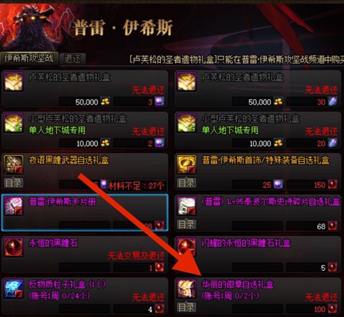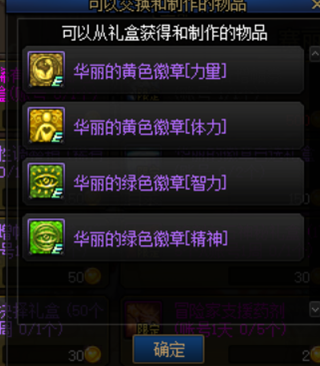 团本材料兑换,每周可以用200个永恒的黑瞳石换2个华丽的徽章自选礼盒,用200个反物质粒子换4个华丽的徽章随机礼盒。此外,周常地下城的隐藏房间也有几率直接掉落徽章礼盒。