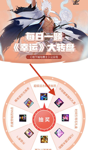 地下城与勇士公众号答题和签到,在公众号回复每日答题,回答正确后会有进入抽奖的链接,有机会抽中华丽的徽章随机礼盒。
