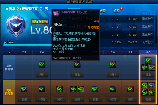 夏日福利大集锦活动,累计签到6天即可获得2个华丽的徽章自选礼盒。