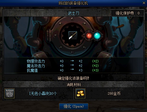 不使用强化卷强化装备30次推荐小伙伴们使用武士刀来完成,武士刀的强化所需金币和无色都比较少,不会给小伙伴带来负担,如果运气较好打造出高强武士刀还可以当做垫子卖一个好价钱。