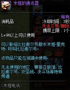 完成96级主线任务后获得的道具【米娅的通讯器】能够让我们快速到达比拉谢尔号,在比拉谢尔号的传送面板上,我们可以轻松的到达100级各个新副本,非常方便。如果跳过了该主线任务,也可以从赛丽亚的房间右侧传送到比拉谢尔号,在米娅的商店重新购买通讯器。