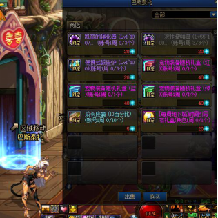 选择一个小伙伴们自己感觉过图效率最高的角色,点赛利亚房间左下角的猫女,完成本周的3次周常副本。周常副本有几率出现隐藏宝箱,其中装备提升礼盒、自选宠物装备和华丽徽章自选都是打造小号非常棒的奖励。