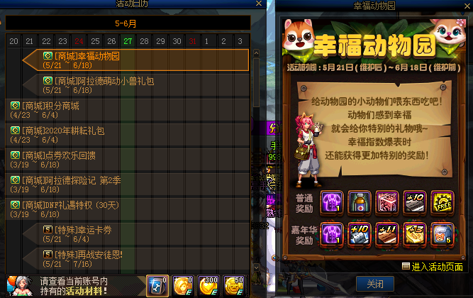 首先我们需要扫一眼赛利亚房间的活动NPC和活动日历,例如当前版中的幸福动物园活动等等。周期活动一般来说都需要通关一定次数的推荐地图或者打够相关材料,所以我们可以先明确活动的需求,再去刷对应的副本。
