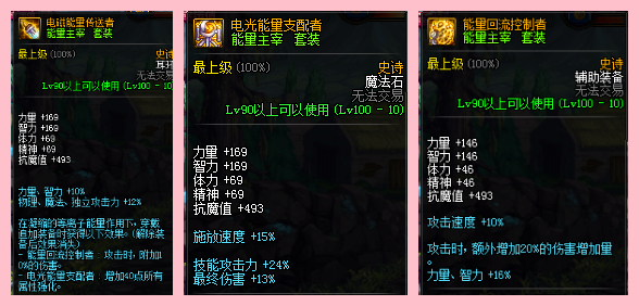 【3】普雷特殊装备,同样不论是太阳,大地还是天空,都统一升级为能量主宰套装,这套装备在3件套特殊装备中排名第二,仅次于军神套。