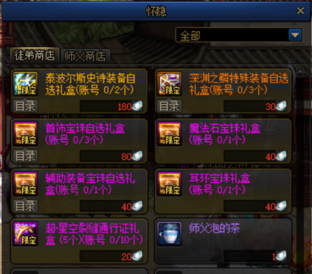 而辅助装备、耳环宝珠现在相对比较便宜,而且活动也送了很多,推荐有多余的徒弟通宝后再进行购买,或者直接在拍卖行上购买,一般不会超过10W金币。
