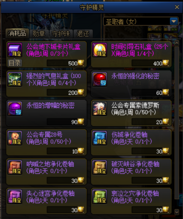 萌新或者回归在拥有多余的公会硬币后,再考虑兑换消耗品商店。
