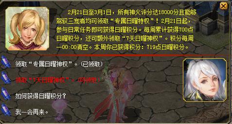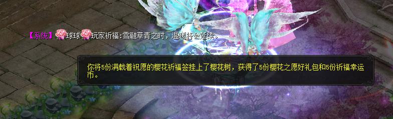 三月,春回大地,寓意着美好与希望的月份。三月伊始,卡城樱花盛开,樱花雨飘满天,魔友们都深深沉浸在花香的甜美与芬芳之中,在这明媚的春光中,魔域更是为大家送上了春樱大礼,千万不要错过哦! 樱花盛开季,我们一直在为武汉祈福,春樱送礼的脚步从未停歇,让魔友畅享游戏乐趣。让我们来看一下都有哪些春樱好礼吧! 1、日曜特权免费续。 小伙伴们领取的免费日曜神权是不是到期了,一周已经落下帷幕,相信很多小伙伴都已经达成了“7天日曜神权”领取积分的条件,您的免费特权已到账,请注意查收哦!积分很容易达成,小伙伴们千万不要松懈,坚持完成任务,此活动直至疫情结束,是超大的福利。  2、许愿赢取春樱幸运星。 3月1日和3月8日,在春樱树下许愿,将会赢取超惊喜大礼包。正式服有锦毛鼠礼包、三星开天幸运盒等豪华大奖,怀旧版有绯梦红姬、锦毛鼠礼包等豪华大奖,都是魔友翘首以盼的惊喜,魔友们一定要定好闹钟坐等下一期春樱幸运星!  3、樱花绽放送豪礼。 3月1日至3月3日每天0:00至20:59分,所有等级达到90级的小伙伴在祈福樱花树上悬挂樱花祈福签时,将会获得除樱花之愿好礼包之外的“祈福幸运币”。 小伙伴们每次悬挂樱花祈福签,都将为樱花树增加祈福值。樱花树的等级分3级,每一份祈福签可以增加10点祈福值,每人每天最多可祈福10次。每次祈福成功还可额外获得1份祈福幸运币。(温馨提示:每次悬挂10枚祈愿签将获得10枚叠加祈愿币,每次悬挂1枚则是不能叠加在一起的许愿币,觉得占背包空间的小伙伴可以攒够5枚或10枚一起许愿。) 当全服祈愿值达到3级时,奖励将会翻3倍。光辉神纹[赠]、龙渊剑域至宝匣[赠]、龙渊剑域秘宝匣[赠]、70级神火碎晶等,非怀旧版臻品待您收入囊中;电浆药水[赠]、19星XO礼包[赠]、月光宝盒[赠]、特制经验球宝袋等,应有尽有。 0:00至20:59,携带祈福签进行祈福,获得樱花之愿好礼包和幸运币。  打开樱花祈愿礼包可以获得4级兽灵药水、30星xo礼包和70级神火碎焰等豪礼。  许愿币出现在背包内,每晚21:00至23:59,在祈福樱花树附近使用祈福幸运币,将有机会获得龙渊剑域秘宝匣(赠)、龙渊剑域至宝匣(赠)、70级神火碎焰等豪礼。   欣赏樱花的同时,动动手就可获得海量奖励,何乐而不为呢?小伙伴一定要记清楚时间,超时悬挂福签不会获得幸运币,幸运币只限当天使用,千万不要错过了哦! 我们相信春暖花开,疫情必散,我们相信阳春三月,好运必来,愿春樱盛开带给我们祥瑞和好运。武大的樱花也该像卡城这般烂漫了吧,我们为武汉祈福,愿早日与武汉樱花再相见!