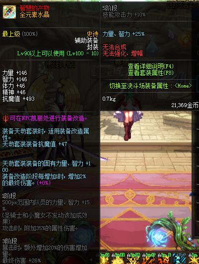 作为85级史诗套天劫套装的强化左槽,最大的亮点在于其没有黄字和爆伤的冲突属性。与改造3阶段相比较,改造5阶段在属性上多了10技能伤害4的最终伤害,性价比较低。