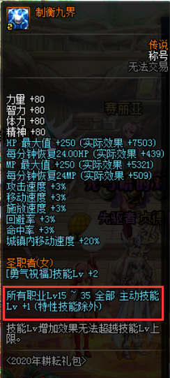 另外,由于耕耘称号有几率洗出二级一次觉醒技能,所以有的小伙伴为了极限提升,会选择附魔了一次觉醒的“无畏战斗者”,以便在提升二级一次觉醒的同时,还能提升一级被动技能,需要注意的是,称号是只增加没有等级限制的被动的,而且为了堆极限面板去入手的话价格也相对髙昂,建议大家先看清楚。另外商店兑换的制衡九界称号只加主动技能,和礼包的几款称号有区别,使用时也要注意区分。