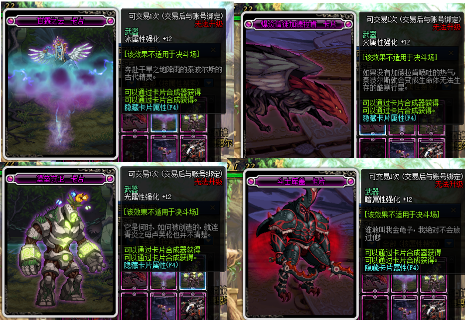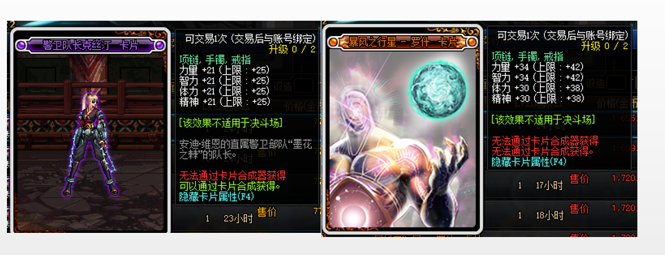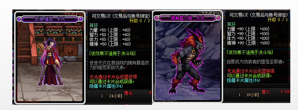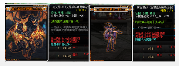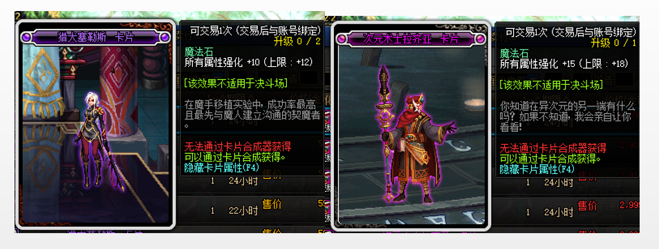 【魔界大战】产物优点在于完全免费,但获取周期较长;拍卖行获取卡片,价格便宜,可直接获取,自己选择即可,后同。