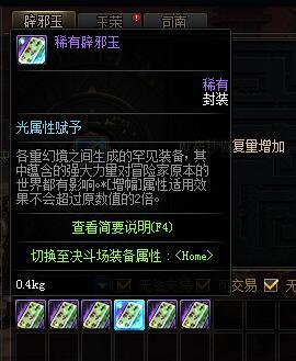 ·合成时,首先由系统确定一个随机的合成获得的辟邪玉的品级(品级决定词条的数量),然后随机选取对应数量的词条合并入新的辟邪玉。