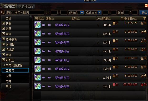 辟邪玉掉落时,有一定概率掉落可交易的辟邪玉,可以通过拍卖行系统进行交易。