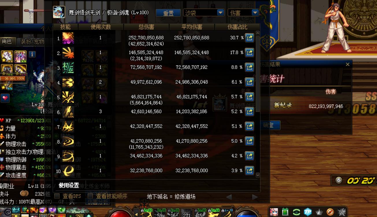 测试使用常规打法:双拔刀,双猛龙,3流。