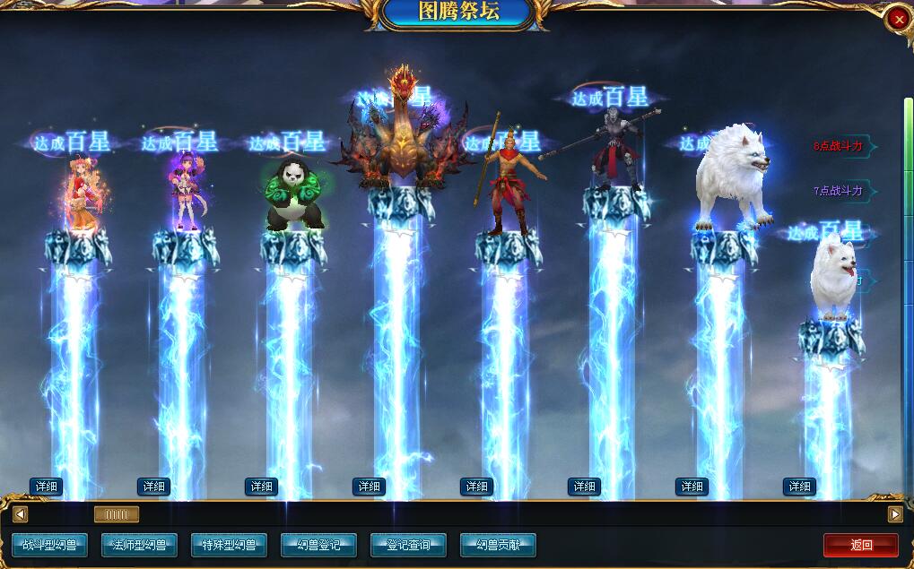 每个军团可以开启图腾,开启图腾后,即可登记幻兽,每个图腾一共可以登记五十只宝宝。但是,并不是登记的宝宝越多,战斗力越多,战斗力的增加只和该图腾登记的前五幻兽的星级排名来决定。