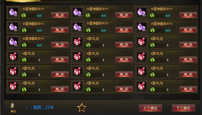 找遍摊位,80片的神0摆价365,灵魂是2魔石,个人感觉本区的物价应该保持的不错,毕竟高星幻兽多则说明了本区的碎片的消耗比较多,不论是养老还是副本玩家都是很值得来入驻的,想体验一下的也可以直接收个高战号,一下子进入本区前十,战力杠杠滴哦!