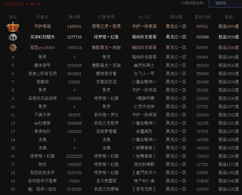 战力的真正体现,不多不少刚刚好,本区千星幻兽正好20只,其中3000+有3只,2000+有8只,1000+有9只,这样的整体实力在老区中是比较牛的了。