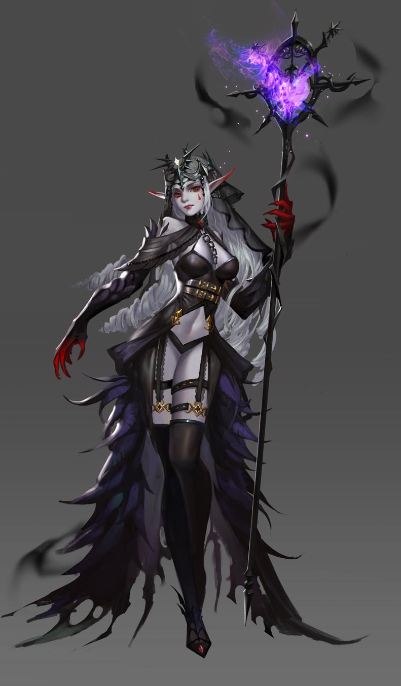 一名身穿黑色衣裳,血红色的手指锋利就像爪子,左手紧紧握着一柄黑色法杖的少女在汹涌的怪兽群中。