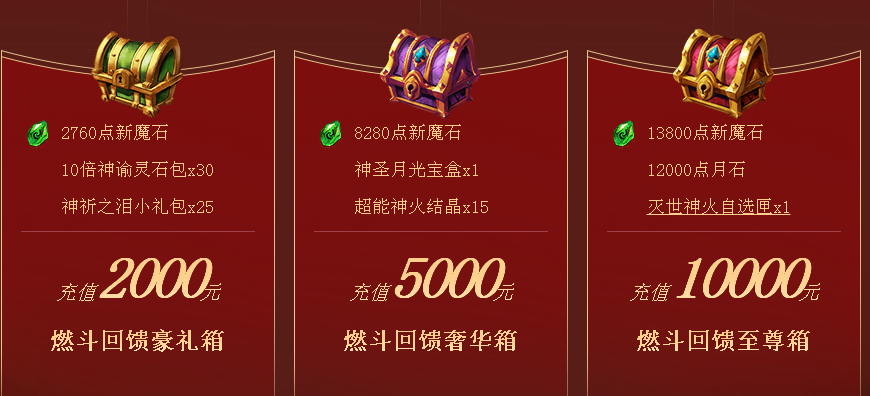 各个价位的热血回馈礼箱在等着魔民们带回家哦,错过这季就是一年啊,小伙伴们嗑药把握机会咯,