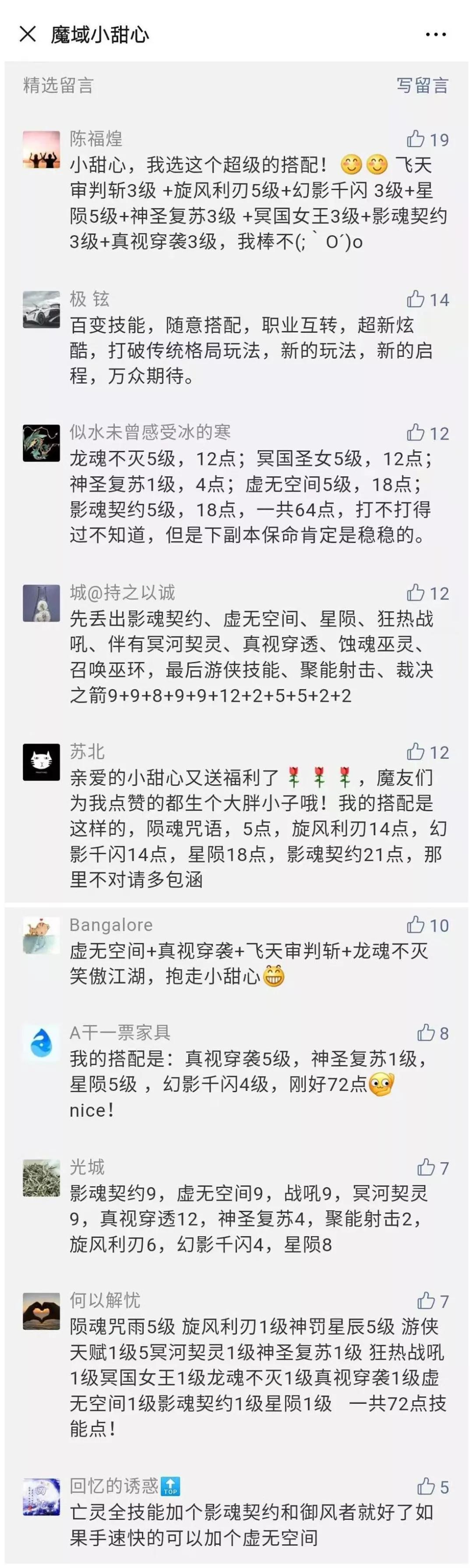 引用官方公众号【魔域小甜心】下方的魔友们留言: