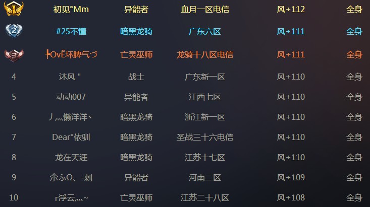 大家好,今天是四属性前十排行榜的最后一期,后续会为大家分享10-20名的属性排行榜和神火榜。希望大家敬请期待,下面我们看最后一期风属性全球前十排行榜:
