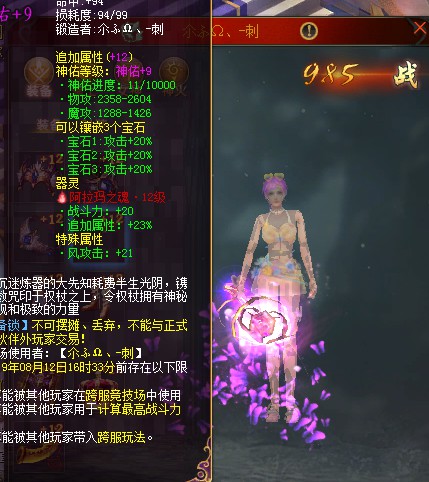 装备属性:108点〔官方数据,装备没带身上〕
