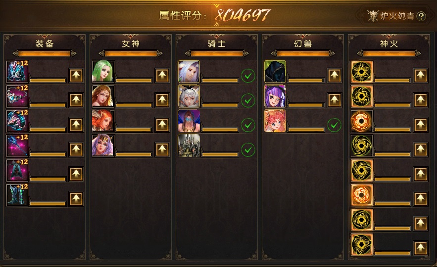 下图80万是31970神火、110属性的亡灵,84万为30490神火、96属性的弓箭手,亡灵紫鸡攻击和弓箭手狗差了300,这4万分数不知道差在哪里,弓箭手英雄普通灭世我可以稳定打2.4亿,而这个亡灵只能打1.5-1.9亿,伤害差距很大。虚空塔极限都是156层。