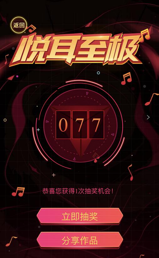 要特别说明一下,演唱分数和抽奖次数是有关系的哦,演唱分数100=3次抽奖,演唱分数90~99=2次抽奖,演唱分数71~89=1次抽奖,演唱分数小于等于70分的玩家很遗憾没有抽奖次数。