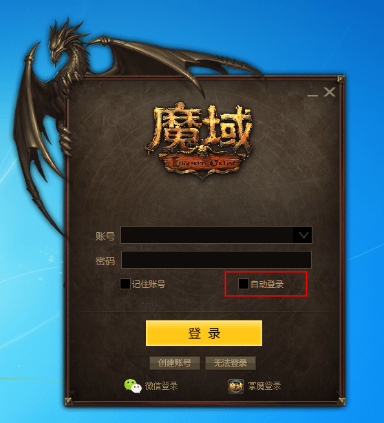 《魔域》全新登录平台重磅来袭,化繁为简新模式,让界面更加直观,让运行更加畅快!使用登录平台登录游戏,还将享有专属“网吧特权”! 如何使用登录平台:第一步:登录账号1、开启魔域客户端,在弹出的登录界面中输入账号与密码,点击登录按钮即可进入平台界面。 2、勾选“自动登录”后,下次开启魔域客户端即可自动登录到平台界面。