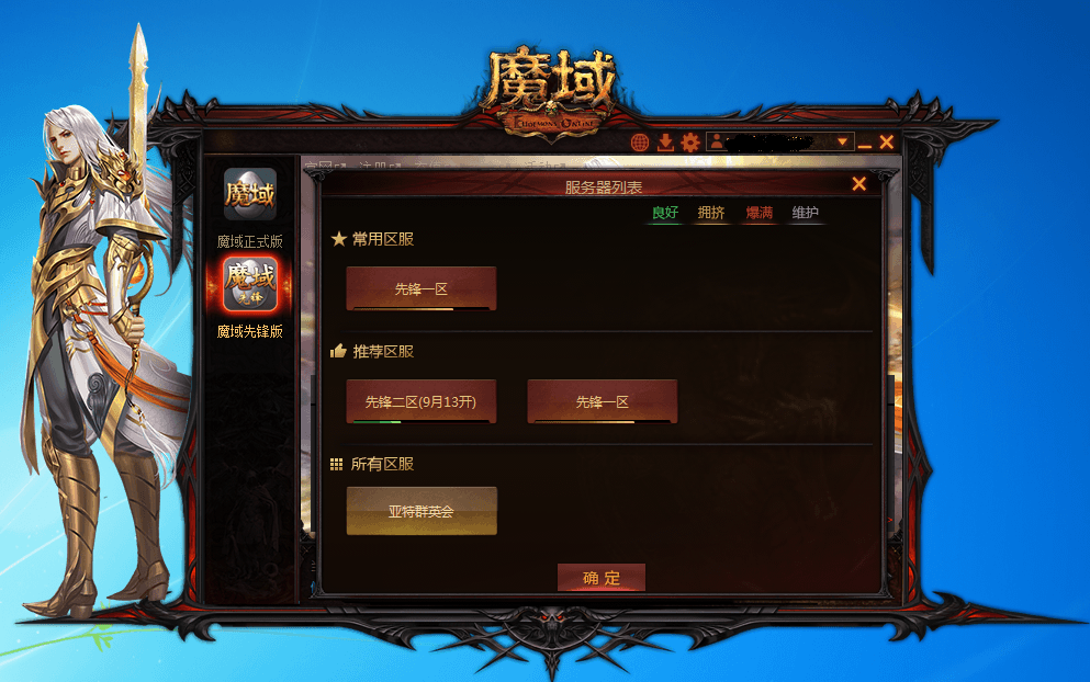 4、选择区服后点击“确定”,即可回到平台主界面。 第四步:开始游戏选择好区服后,根据国家法律法规,需勾选“同意游戏用户协议”后,方可点击“开始游戏”进入游戏。