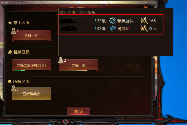 3、当在某区服中有创建角色时,该区服左上角会显示你所创建的角色数量,鼠标悬浮在该区服上后,会弹出在该区服中的角色详情列表。