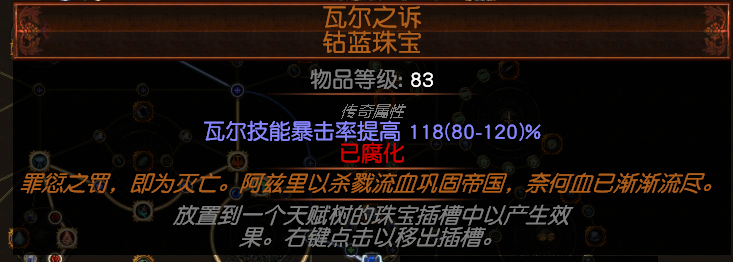 此处还可以用溅血化石点箭袋获取最大120%的瓦尔技能暴击率(个人不建议,因为会加大箭袋的操作难度,如果有兴趣可以去做一做试试。)