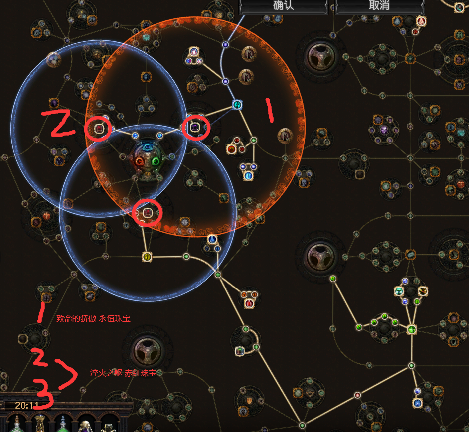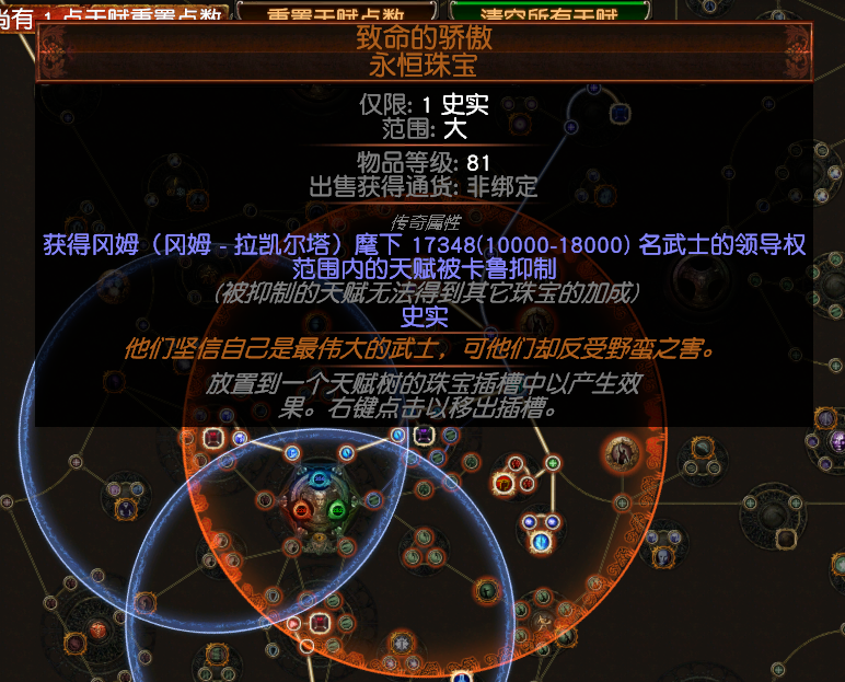 致命的的骄傲 永恒珠宝,淬火之躯 赤红珠宝X2,贵族出门三个槽,记得把卡鲁珠宝放在右侧收益最大