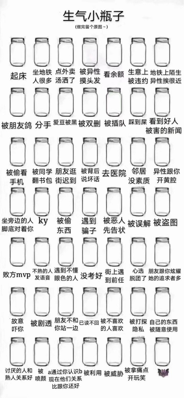 有魔友总结了自己的生气小瓶子,总结的太到位!