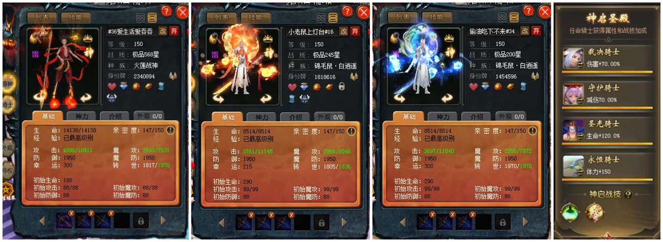 1)幻兽、骑士:出征哪吒(魔攻7531)+炎舞鼠(魔攻8046)+偷天鼠(魔攻7972)(不自信的玩家可以多备一套宠),骑士任命150*鸿运猪、200*狗。
