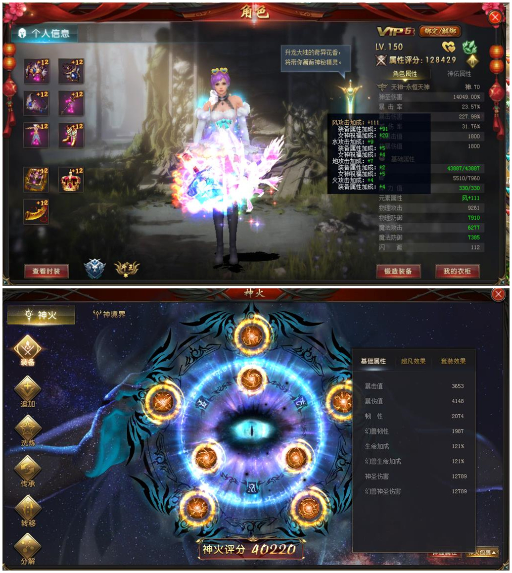 2)装备、神火:装备91点属性,加女神110点;神火4W,6件3*+2件2*。