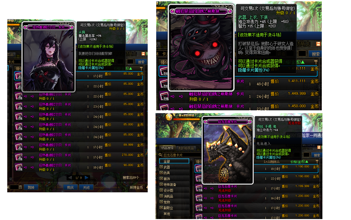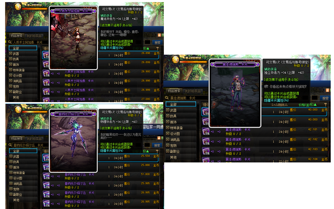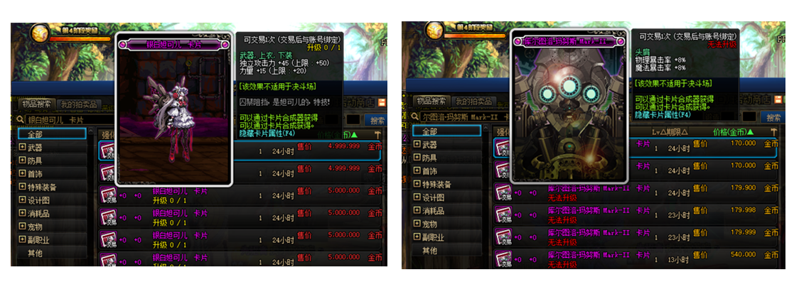 上衣/下装:银白妲可儿卡片(+50独立+20力量)祭司长阿拉克卡片(+50物理/魔法/独立攻击)