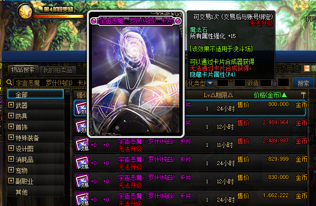 宇宙恶魔:罗什(纯白)卡片(+15所有属性强化)