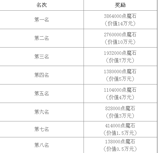 神域一直是魔域的核心玩点!各位大佬级玩家全力冲战,各大联盟招兵买马,为的就是能够在神域中掌握先机,有人,有战,有攻击,那么你便有话语权! 每年的神域争霸赛都是一场火爆魔域的饕餮盛宴! 今年的神域争霸赛又将拉开帷幕! 相比较往期,这次的神域争霸是可以说是豪礼万千,让你一夜暴富!全都有奖,全都有礼! 先给出一个震撼的消息!这次神域争霸赛的第一名的联盟,可领取价值14WRMB的魔石哦,换算下来也就是3864000魔石呢,三百多万魔石,可以说是重赏之下必有勇夫!各位大佬对于第一都是虎视眈眈吧! 要想拿第一需要的是实力加运气哦!  除了了第一名的联盟,其他名次的联盟也有着不少魔石的奖励的,第二名:2760000魔石,第三名1932000魔石,第四名1380000魔石,第五名1104000魔石,第六名828000魔石,第七名414000魔石,第八名138000魔石 也就是说,八大联盟保底都是有着138000魔石收入,如果进入前五,那就是百万魔石奖励起步了,想想都觉得很刺激! 当然能够参加本次神域大战的,也都是魔域响当当的大佬玩家! 参赛的八大联盟都有着众多万战级别的玩家,以及海量的攻击手,相信这次神域争霸将会是空前的盛况,八大职业齐聚神域,法师,异能,战士,亡灵,龙骑,弓箭手,御剑师,血族,究竟哪个职业能够在这次的神域争霸中绽放出最耀眼的光芒?我想很多玩家都是非常期待的! 除了团队奖励,在四月16,21,23,28的四场争霸赛中,个人奖励也是呈几何倍数的提高  各位攻击王,相信你们的大刀已经饥渴难耐了吧! 正所谓养兵千日用兵一时,这次的神域争霸赛就是各大联盟,各位大佬,各位指挥官扬名立万,名震魔域的好机会! 八大联盟,神域争霸,百万魔石等你来拿!  挚爱联盟!死神联盟!皇族联盟!情义联盟!仁义联盟!兄弟联盟!水儿联盟,自由联盟! 这八大联盟基本算是魔域最最最顶级的联盟了,究竟哪个联盟能够拔得头筹! 最终胜利的果实又会被哪个联盟摘取,我想各位魔民都是十分好奇,也是十分期待的吧!神域争霸我们拭目以待! 破釜沉舟,百二秦关终属楚 卧薪尝胆,三千越甲可吞吴 神域争霸,有你,有我! 挚爱联盟一路高歌? 死神联盟披荆斩棘? 皇族联盟耀眼夺目? 情义联盟逆流而上? 仁义联盟摧枯拉朽? 兄弟联盟横扫六合? 水儿联盟犁庭扫穴? 自由联盟后来居上? 此次神域争霸这出大戏绝对是魔域2020最浓墨重彩的一笔! 4月16我们不见不散!