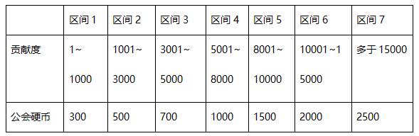 贡献度分7个区间,根据大家所处区间发放对应数量的公会硬币。