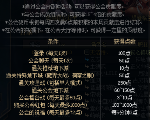 上述渠道总共可获得10450贡献度,每周四结算时可获得2000公会硬币(如果不够的话根据上面提供的方式补上缺的贡献度即可)