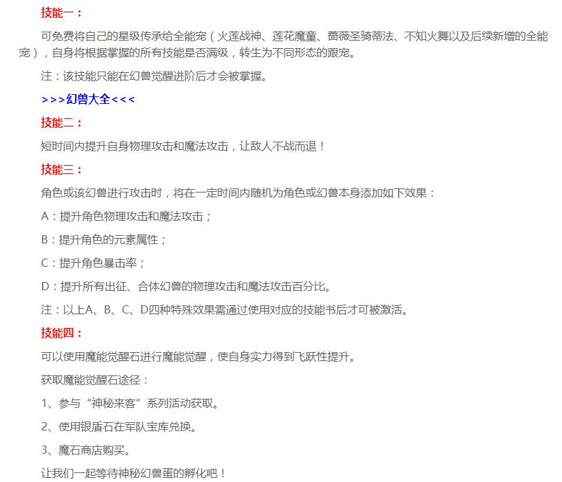 随着新资料片在先锋区的内测,很多神秘面纱都被揭开,关于本体觉醒、本体加强、职业加强也都有了方向,这些改变将会为魔域带来什么可能呢?就目前已知的资料,小记做出了自己的推断。 1、关于幻兽: 新资料片中,本体/魂兽可以觉醒,觉醒后进行本源感应可以获得强大的加成以及感应宠的技能,70*满技能,这种情况下,会出现一大批合本体/魂兽、收第三只宠的玩家,直接会导致副宠、原生宠、第三只宠涨价。 1)副宠涨价:血族、亡灵、龙骑、御剑师本体宠不足70*的还是比较少见,所以副宠的涨价点更多是在魂兽身上,战攻防、法攻防、瑞拉、小精灵很多玩家都没有去合,本体/魂兽70*才满技能,短时间内要合到70*还是会造成副宠的消耗,加之之前合宠奖励的冲击和即将出现的新幻兽,副宠价格可能会有一定的上涨。  2)原生宠涨价:在魔域中,收成品幻兽的价格一般情况下都会小于自己合,所以肯定还是会有一大批玩家选择直接收成品70*战攻防、法攻防、瑞拉、小精灵来绑定魂兽,每绑定一只魂兽,区里就会少一个成品,这样的消耗下去,原生宠价格肯定也会有一定的上涨,而且在瑞拉和小精灵身上体现的应该更明显。瑞拉如今玩异能者的玩家多,消耗必定大,价格上涨;小精灵在于合的人少,但是弓箭手伤害高,且觉醒后70*起源战技效果是在10秒内提升当前出征或合体的所有幻兽及角色1400暴伤值,这个魂兽不要还真不行! 3)第三只宠涨价:然后就是需要进行感应的第三只宠了,哪吒、火舞、蒂法这一类有技能的第三只宠涨价也是必然了,尤其是哪吒,它的技能触发效果与本体宠/魂兽以及起源战技相结合,绝对是1+1>2的效果,火舞和蒂法表现也会不错。除此之外,比如双星、法猫、圣女等面板不错的第三只宠价格也可能会有一定的上涨,毕竟哪吒、火舞绝版,蒂法获得途径有限且价格不菲,平民玩家可能会将关注点转移到这一类宠身上,反正感应也只是感应战斗属性(物防、魔防、物攻、魔攻),这一类宠在伤害提升上也会有不错的表现,所以这一类宠价格也会有一定的提升。另外需要关注的就是新幻兽(还是蛋那个),这种情况下,它的出现或许会在一定程度上影响第三只宠的格局,毕竟从目前公布的技能来看,这个幻兽还是很值得期待的。  2、副本伤害提升: 随着本体/魂兽、职业技能的加强,玩家们的伤害整体会有绝对提升,新资料片中没有提到新神火,反而主打的是军队玩法,这种情况下,副本伤害就会有两个走向。  1)维持不变:目前版本中的伤害副本、任务,比如神火副本、军团秘境、魔炎深渊等,如果在新资料片中BOSS伤害不做变动,那么最大的可能性就是在下一次的更新中会出现新的神火,那时候再做调整。先锋区军团秘境和魔炎深渊的调整,可能也是为正式服调整开路,走向可能是减少次数或直接替换成军队相关的任务。 2)调整伤害:如果在新资料片中,调整了BOSS们的伤害,那么意味着短时间内不会出现新神火,而伤害版魔域暂时告一段落,这个版本回过魔域本质——战斗力,这一点小记结合第三点来说。 3、从伤害到战斗力的转变:初初魔域主打的是战斗力至上,战斗力差别是碾压对方的绝对优势,大概在神火推出开始,一系列平衡战斗力玩法的出现,变成了主打攻击,并且持续到了如今。而在先资料片中,不论是本体觉醒后本源感应保留本体宠战斗力还是神界猎魔战(自由PK抢夺BOSS)以及王国军团,可能指向的都是战斗力。