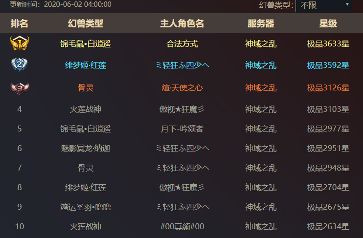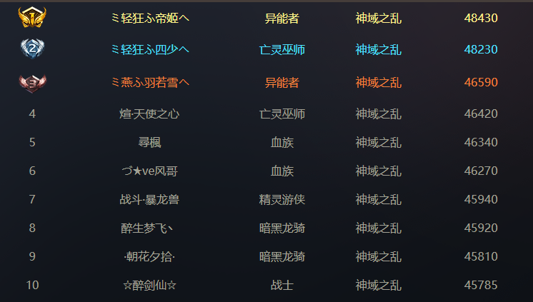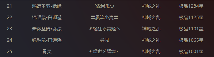 沏一壶好茶,品魔域趣事,择一区终老。 QQ魔域曾经吸引着一大批的玩家,后来并入正式版后一直不温不火着!但是提到QQ区就不得不提到一个神区 -神域之乱 光听这个名字就是霸气十足!这么一个霸气的区服,实力如何呢?是否真的名副其实呢?小伙伴们还犹豫什么?跟着小记的步伐走起来啊 先看看神域之乱名人堂的战力情况  一览本区名人堂,好一个双雄争霸的格局!11000+战力大佬两位,而且战力差距只有100多真的是很不错哦,接着6300+战力一位,5000+战力两位,然后就是4000+战力,3000+战力了。 就名人堂而言神域之乱的实力还是相当有看头的呢! 不知道除了两位大佬还有没有隐藏的第三位高战了,咱们幻兽排行榜寻找真相吧!    本区千星级别幻兽,总计25只,这个数量还是相当不错的呢!其中3000星级别4只!2000星级别8只,1000星级别13只。 3000星的幻兽数量还是不少的,如果能够有4000星级别的幻兽压阵那整个场面就完完全全的提升了一个档次! 本区区老大:煊天使之心幻兽总计星:3633+3126+2977,合计9736星 区第二战:轻狂四少,幻兽总星级:3592+2951+2948,合计9491星! 两位大佬的幻兽星级差距也不是非常大,竞争的很是激烈! 副本大佬赶紧来入驻啊,有着2位顶级大佬的加持,整体的物价又是如何的呢?  扫了一下本区的摊位,99片的30*神哦的数量也不是很多,摆摊价在410魔石,小记预计真实的成交价应该在290左右,金币价格在17左右! 这样的物价在老区中算是比较不错的了,对于留住人气还是有着不小的帮助的! 最后看看本区的神火排名  本区最高神火48430分,也算是比较高的了,可惜的就是这个成绩还是没能够挤进世界百强!还需多多努力,本区第十名神火也有着45785分,整体神火评分相对而言没有那么的出众哦! 总结: 神域之乱作为老牌区服,有着2为大佬级别玩家的支撑,稳定的物价,火爆的人气,非常适合那些攻击手玩家,副本玩家,养老玩家的入驻! 神域世界因你而乱!