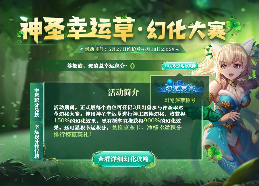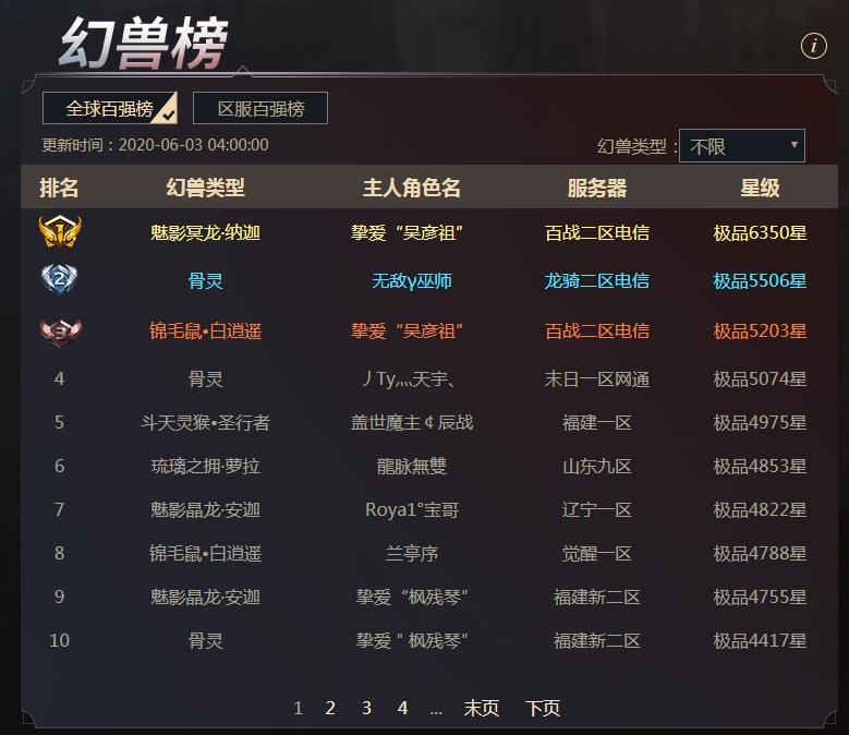 各位亲爱的魔友们大家好,你们最呆萌的小记者又上线啦! 春风和煦的5月刚走过,热情似火的6月就到了。 气温上升,人们做起工作来也是风风火火,毫不拖沓。 毕竟如今也是2020年的一半啊!  不知道魔友们还是否记得年初自己的计划呢? 可能是上学的时候多读几本书? 喜欢交友的魔友计划多交几个女朋友... 而在魔域中呢,可能是从1000战计划升到2000战。 也可能是换一身3星开天套装,洗好副属性。 当然,更多的魔友可能是许愿自己能把宝宝多合高一些星级。 比如之前100星的宝宝,合到200星。 之前200星的宝宝,合到400星。 也可能是之前4000星的宝宝,合到5000星!  魔友们没有看错,小记写的是——5000星! 如今魔域唯一一只超越了6000星的宝宝,相信大家都知道是谁的。那就是咱们的魔域第一人,枫残琴!  枫总的土豪实力魔友们自然都晓得,如果要追赶这只6000星,还是要等待一段时间。 不过稍微低一点的星级,5000星,那就有很多宝宝正在奋力直追! 先来看一下最近的高星排行榜!  可以看到,枫总的黑龙6300星还是稳稳的世界第一,Y哥的5500星骨灵排在后面。 然后是枫总的5200星白老鼠,天宇大佬的5000星骨灵。 再来就是最近风头正劲的盖世魔主辰战,让福建一区站街10分钟都要掉线的大佬角色。 他的那只超厚血量猴子已经冲到了4975星。  后面是山东九区大佬的4800星萝拉,辽宁一区宝哥的4800星,觉醒一区大佬的4700星等。 小记可以说,后面这几位大佬,肯定会很快冲到5000星! 为什么这么说呢? 因为有目前最火爆的“神圣幸运草幻化大赛”!  使用神圣幸运草进行神属性幻化,保底幻化分数1.5倍,最高9倍! 9倍的分数,那还不是狂涨星级? 所以大佬们都开始疯狂冲星级呀!4000飙5000,5000还有可能继续冲6000! 当然,咱们魔友们虽然不像大佬们这么土豪,但也可以尝试一波啊! 等你尝一尝翻倍涨分数的感觉,就知道什么叫做“飞一般的感觉”!  小记也是十分期待,在2020年的后续半年中,是否会涌现更多的5000星,甚至6000星! 也希望大家都抓住这一波福利机会,涨星拿积分,换珠宝奖品,得无上称号! 疯狂涨星引热潮,半年奇迹知分晓。 六千高星不是梦,五千宝宝遍地跑!