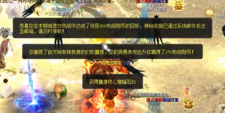 周一周五的戈壁攻防战给玩家们带来了更直接的PK感官,兄弟齐心热血打天下的魔域又回来了! 想要在攻防战中取得胜利,魔像核心和魔像是关键。 高等级的魔像核心和稀有魔像,绝对能让玩家在攻防战中脱颖而出,为所欲为!  小记的魔像虽然只是传说(第三档)的,但是仗着魔像核心等级到达40级,在这周一的攻防战中,真的做到了为所欲为!   来看看小记的高光时刻! first blood!直接摧毁对方的魔像,战勋币到手!  Double kill!  Triple kill!  Quadra Kill!  Penta Kill!  最后,我们军团也完成了本次攻防战的防守,取得两连胜!